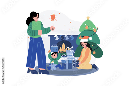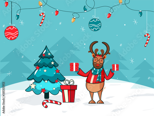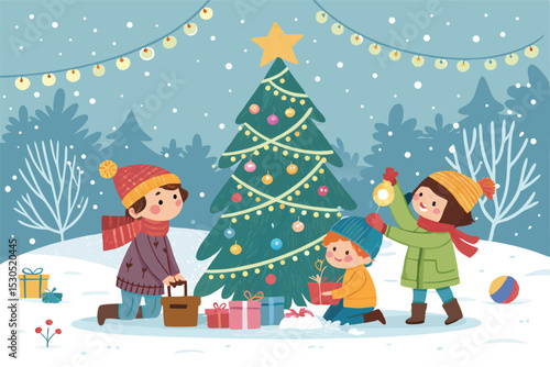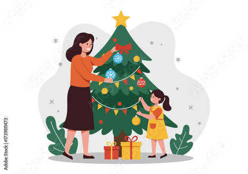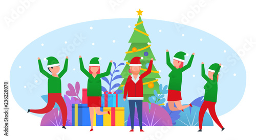 Счастливые девушки празднуют Рождество онлайн, плоская векторная иллюстрация. Экраны ноутбуков и смартфонов с молодыми женщинами в шляпах Санта-Клауса. Онлайн-вечеринка, технологии видеозвонков.