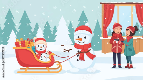 Счастливые девушки празднуют Рождество онлайн, плоская векторная иллюстрация. Экраны портативных компьютеров и смартфонов с изображением молодых женщин в шляпах Санта-Клауса. Онлайн-вечеринки, технологии видеозвонков.
