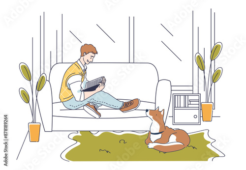 Счастливый дедушка и внук вместе играют в игрушечную игру, плоская векторная иллюстрация. Дедушка с внуком проводят время вместе. Отношения между бабушкой, дедушкой и внуком.