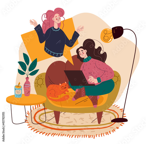 Счастливая бабушка читает книгу с внучкой, сидящей в кресле, плоская векторная иллюстрация. Бабушка и внук проводят время вместе. Отношения между бабушкой, дедушкой и внуком.