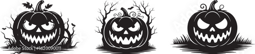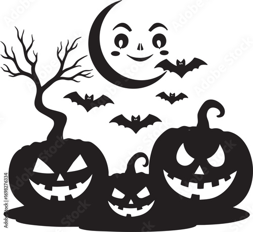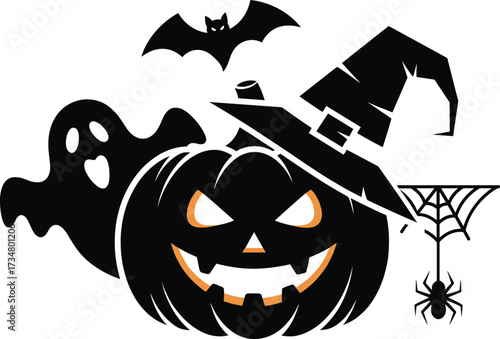 Баннер "Счастливый Хэллоуин". вектор праздника 30-31 октября. Приглашение на осеннюю вечеринку. Шаблон заголовка веб-сайта с иллюстрацией жуткой тыквы, паутины и летающей летучей мыши