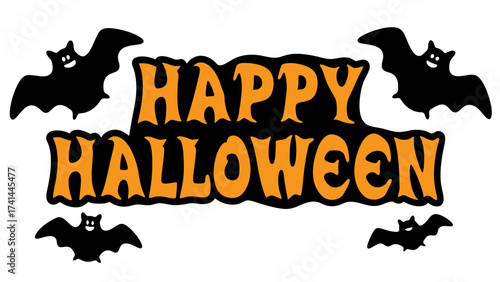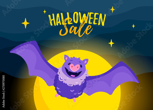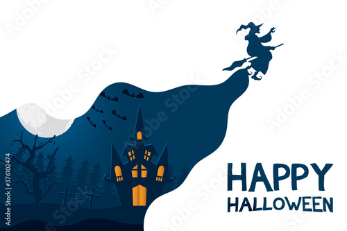 Летающие летучие мыши, милые призраки Бу, ночной фон с кладбищем с могилами и мертвым деревом, векторная иллюстрация в стиле бумажного искусства. Композиция Happy Halloween для приглашения на вечеринку, плаката, баннера и т.д.