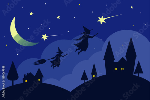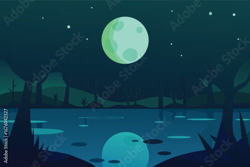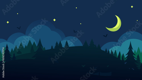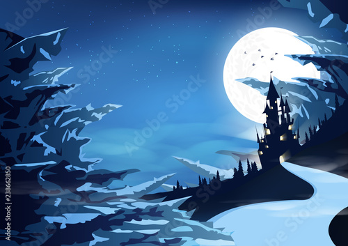Ночной фон с полной луной, дом с привидениями, летающие летучие мыши, кладбище с могилами и мертвым деревом, векторная иллюстрация в стиле бумажного искусства. Шаблон баннера с плакатом Happy Halloween.