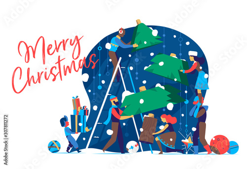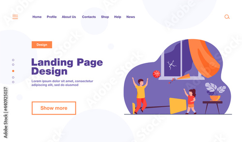 Плоская целевая страница векторного баннера на Хэллоуин. Предыстория вечеринки. Счастливые люди в праздничных костюмах празднуют страшное событие октябрьской ночи иллюстрация. Празднование осеннего сезона