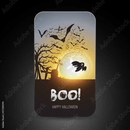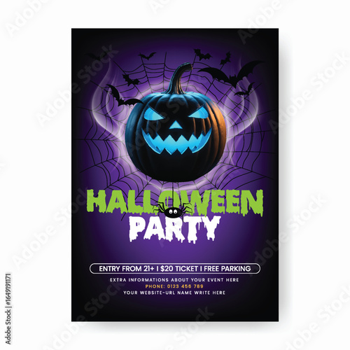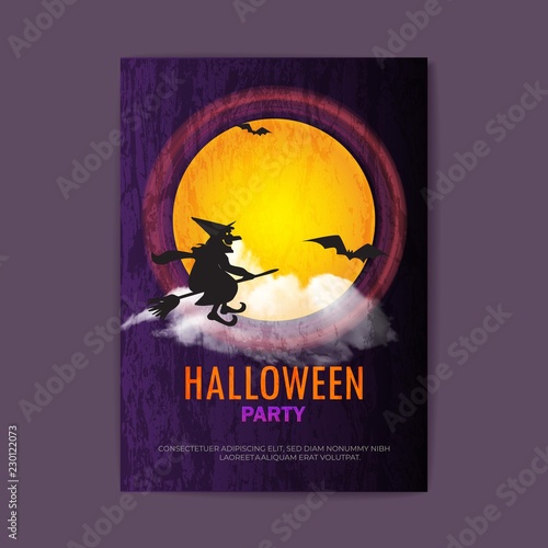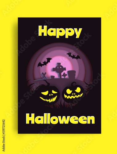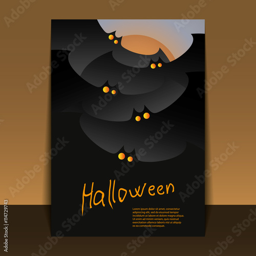 Поздравительная открытка с Днем Хэллоуина с векторной иллюстрацией жуткого дерева и жуткого тыквенного фонаря. Пригласительный плакат для рекламной кампании по продаже или празднования октябрьских праздников