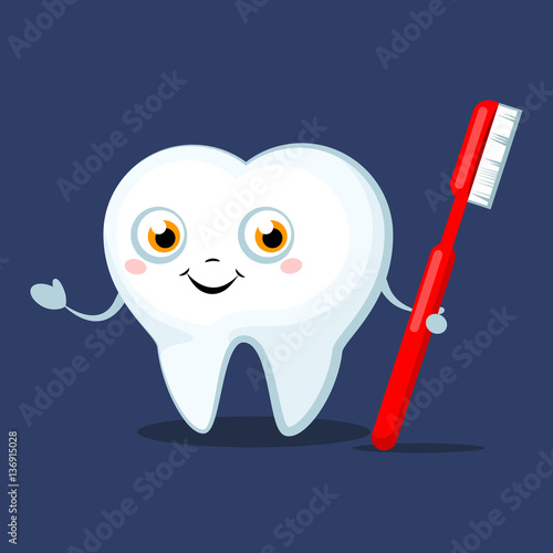 Счастливый здоровый прыгающий зуб векторная иконка, изолированная на белом фоне