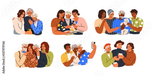 Счастливая любящая пожилая супружеская пара, обнимающаяся с чувством обожания и романтических эмоций векторная иллюстрация. Портрет старика и женщины, обнимающихся вместе, изолированных на белом фоне. Любовные отношения