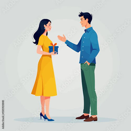 Счастливые персонажи - мужчина и женщина, векторная иконка на изолированном фоне.