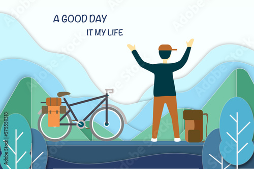 Счастливый человек и его автомобиль, плоская векторная иллюстрация. Владелец автомобиля и водитель мужского пола чинят характер, моют свой автомобиль с помощью водяного шланга. Концепция людей и автомобилей.
