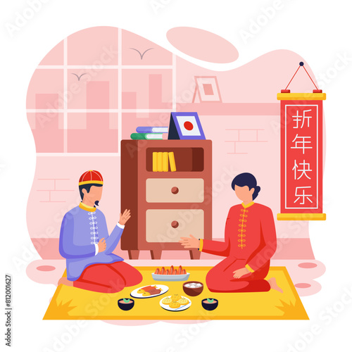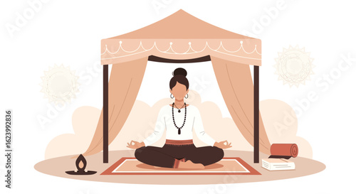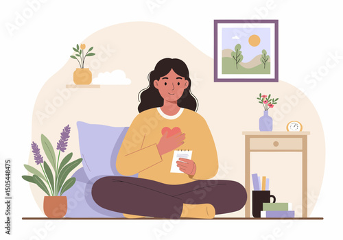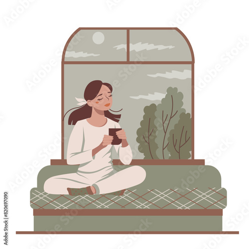 Счастливая мать возвращается домой с работы, милые дети ждут ее, сидя на диване в гостиной, плоская векторная иллюстрация. Домашний интерьер. Счастливые семейные отношения. Возвращение на родину.