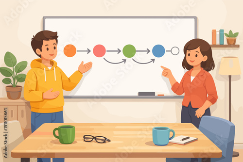 Счастливая мать готовит с дочерью на кухне, плоская векторная иллюстрация. Мама и ребенок проводят время вместе, готовя ужин. Отношения между родителями и детьми, счастливое материнство и воспитание детей.