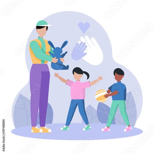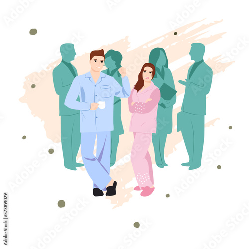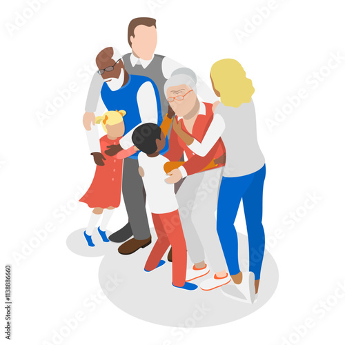 Вектор празднования счастливого дня матери и праздника родов. Концепция семейной вечеринки. Супружеская пара с детьми и бабушкой/дедушкой с иллюстрацией торта. Отцовство и материнство