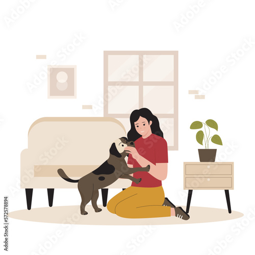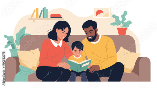 Счастливая мать читает книгу с дочерью, сидя на ковре в гостиной, плоская векторная иллюстрация. Мама и ребенок проводят время вместе. Отношения между родителями и детьми, счастливое материнство и воспитание детей.