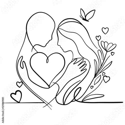 Мать, держащая своего очаровательного мальчика, векторная иллюстрация в стиле бумажного художественного ремесла. Маленький ребенок и его мама в форме сердца. Открытка с Днем матери, плакат, баннер и т.д.