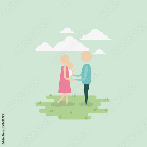 Счастливая женщина, гуляющая в парке со своими детьми, векторная иллюстрация в стиле бумажного искусства. Молодая мать держит своего сына за руку и толкает детскую коляску. Открытка с Днем матери, плакат, баннер и т.д.