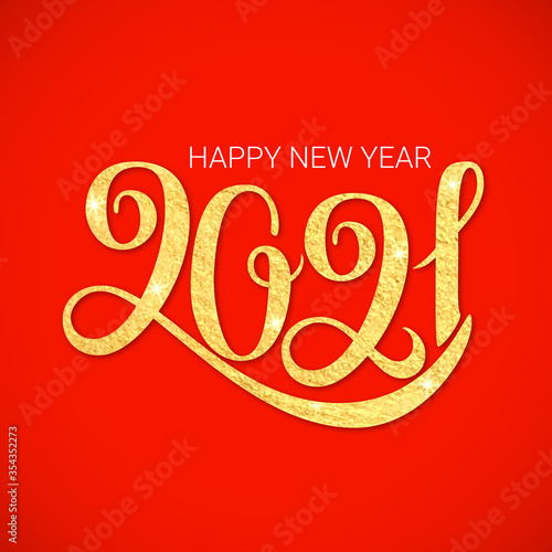 Шаблон векторной поздравительной открытки с Новым годом. Креативные номера 2020 с рисунком зимних праздников на красном фоне со снежинками, текстом.