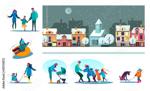 Люди празднуют счастливый Новый год и веселую рождественскую вечеринку векторная иллюстрация сцены. Любящая семейная пара, мужчина и женщина заказывают еду, готовят выпечку, готовят подарки к празднику
