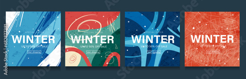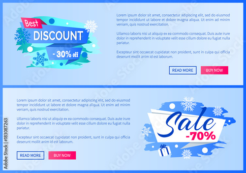 Шаблон веб-сайта целевой страницы с Новым годом. Векторная иллюстрация. Креативные номера 2019 года с рисунком зимних праздников на синем фоне со снежинками, белыми деревьями.