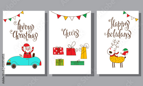 С Новым годом векторная иллюстрация дизайна в плоском стиле. Шляпа Санта-Клауса, белая борода и усы, свечи, стакан молока с печеньем, леденцы, ручка и письмо Санта-Клаусу.