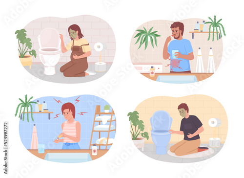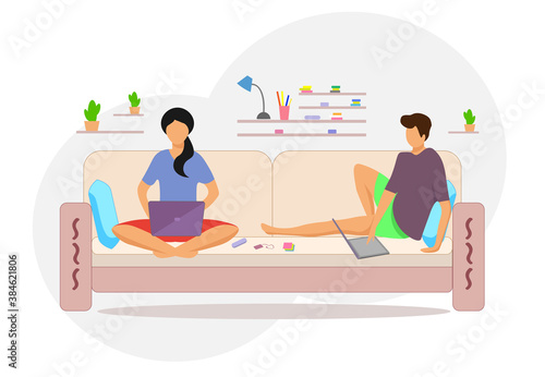 Счастливые обрадованные дети-персонажи веселятся, сражаясь подушками в домашней векторной иллюстрации в спальне. Возбужденные дети прыгают по кровати, поднимая шум. Радостное детство и свободное время вместе