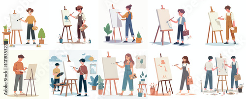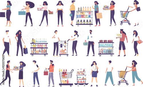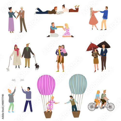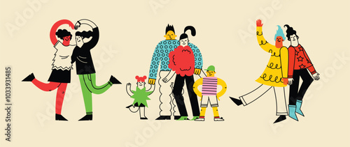 Персонажи счастливых людей, празднующие Рождество и Новый год векторная иллюстрация. Молодые мужчина и женщина, одетые в теплую зимнюю верхнюю одежду, держат в руках фейерверк и бенгальский огонь