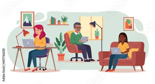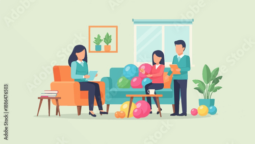 Счастливые люди дарят и получают подарки и цветы, плоская векторная изолированная иллюстрация. Подарки-сюрпризы, подарки на день рождения и другие праздничные подарки семейным персонажам, друзьям, влюбленным.