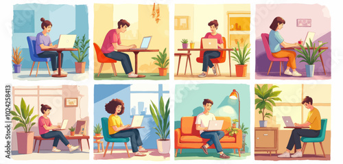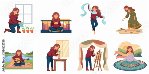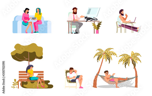 Счастливые люди дарят и получают подарки, набор векторных плакатов. Семья преподносит подарок ребенку на день рождения. Мужчина дарит подарочную коробку своей девушке, романтической паре. Руки держат подарочную коробку с лентой.