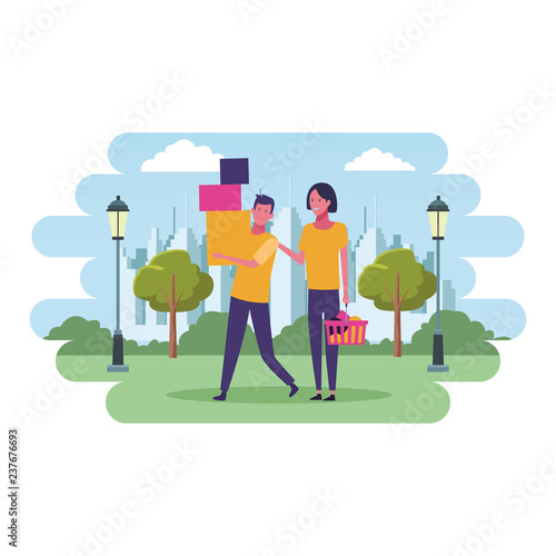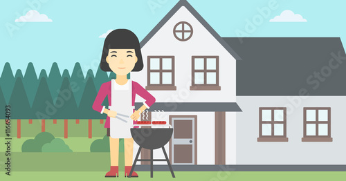 Летние походы и барбекю. Счастливые люди читают книги, лежа в гамаке и на одеяле, жарят сосиски на гриле, плоская векторная иллюстрация. Вечеринка с барбекю, пикник на открытом воздухе, путешествие в фургоне, летний лагерь.