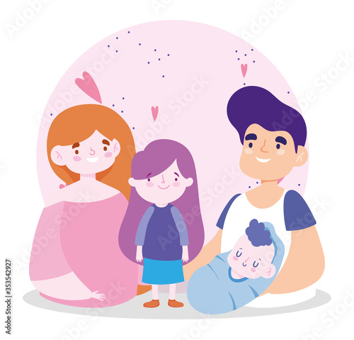 Счастливые владельцы домашних животных с милым щенком и котенком, плоская векторная иллюстрация. Девочка и мальчик гладят, обнимают собаку и кошку, своих лучших друзей-животных. Владение домашними животными, уход за домашними животными, любовь.