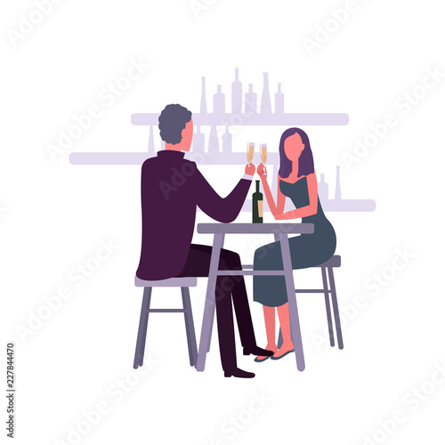 Счастливые молодые люди, сидящие за столом, наслаждающиеся кофе и разговаривающие друг с другом, плоская векторная иллюстрация. Романтическая пара, проводящая время вместе. Перерыв на кофе. Любовь. Отношение.