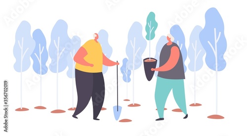 Романтическая пожилая пара векторная плоская иллюстрация. Счастливые пожилые мужчина и женщина разговаривают друг с другом на улице. Концепция человеческих отношений.