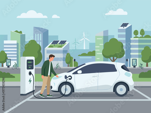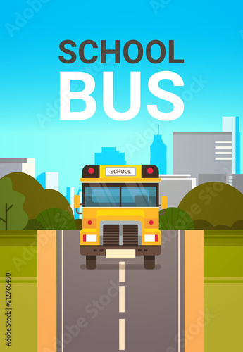 Счастливый школьник, студент с рюкзаком садится в желтый школьный автобус, плоская векторная иллюстрация. Служба школьного транспорта.