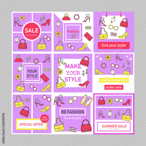 Изолированный набор цветочных квадратных шаблонов поздравительных открыток с днем Святого Валентина. Сообщение в социальных сетях, мобильное приложение, дизайн баннера с креативным векторным рисунком в виде сердца