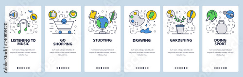 Значки с днем Святого Валентина. Любовь и романтический ужин, обручальное кольцо. Экраны загрузки мобильных приложений. Шаблон векторного баннера меню для разработки веб-сайтов и мобильных устройств. Иллюстрация дизайна веб-сайта.
