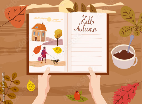 Векторная иллюстрация счастливой женщины-клиента, рекламирующей мобильную цифровую услугу заказа фастфуда. Веселый взволнованный клиент, держащий в руках смартфон и радующийся преимуществам модного онлайн-приложения для доставки еды