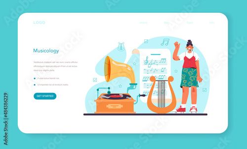 Счастливая женщина танцует дома одна. Старинный магнитофон. Иллюстрация концепции. Векторный шаблон дизайна веб-сайта. CD-диск, магнитофон. Женщина слушает музыку.
