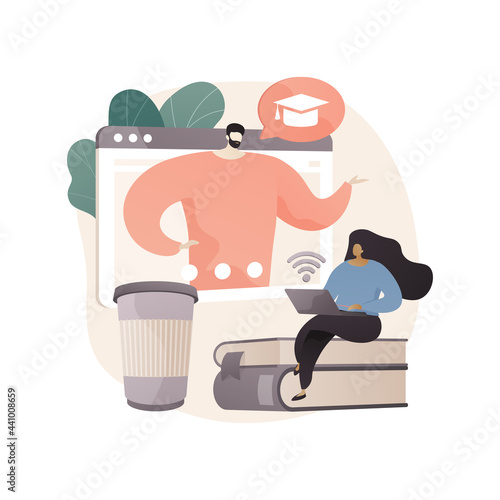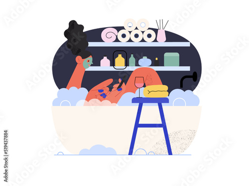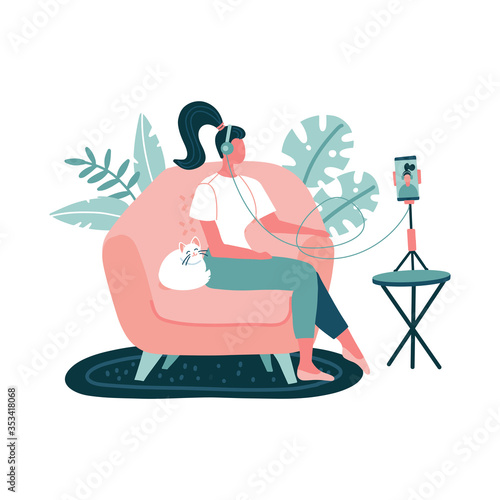 Счастливая женщина отдыхает, наслаждаясь кофе, чтобы пойти, сидя в кресле-мешке, плоская векторная иллюстрация. Перерыв на кофе. Время чаепития.