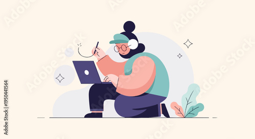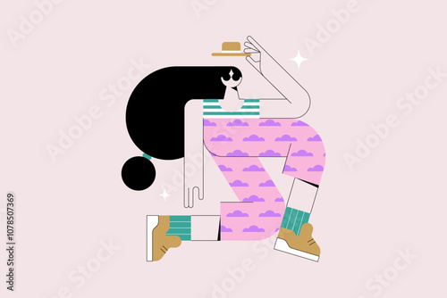 Счастливая женщина отдыхает, наслаждаясь кофе, чтобы пойти посидеть в кресле-мешке, плоская векторная иллюстрация. Перерыв на кофе. Время чаепития.