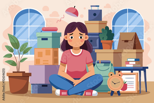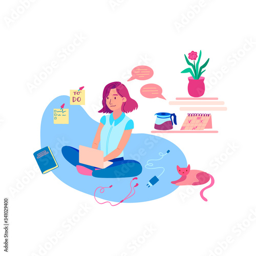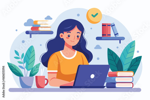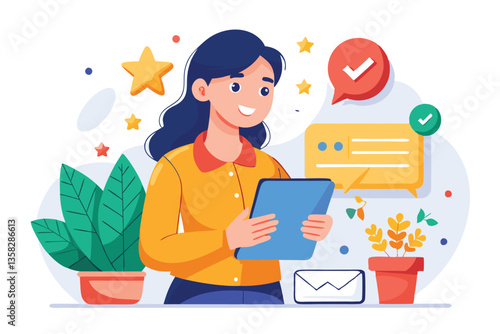 Счастливая женщина открыла подарочную коробку с новым телефоном. Иллюстрация концепции праздничного подарка. Векторный шаблон дизайна веб-сайта. Женщина сама делает открытки.