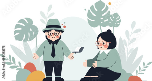 Две счастливые женщины наслаждаются кофейным напитком, плоская векторная иллюстрация. Подруги болтают, пьют чай, сидя за столом. Перерыв на кофе. Время чаепития.