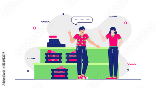 Счастливые женщины отправляют подарки друзьям, любимым людям онлайн и курьером доставляют их получателю, плоская векторная иллюстрация. День рождения, годовщина, романтические подарки. Онлайн-служба доставки подарков.