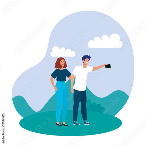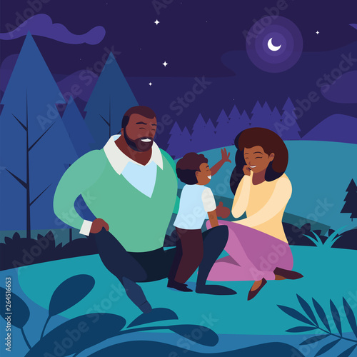 Счастливая молодая пара исследует звездное небо, глядя в телескоп, проводя время вместе во время романтических свиданий на открытом воздухе векторная иллюстрация