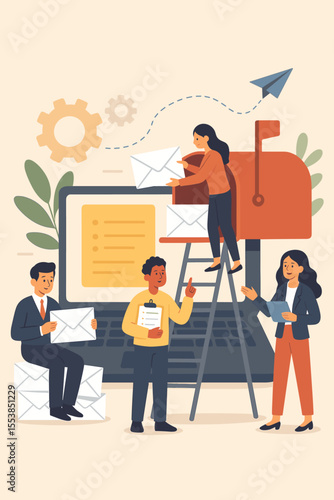 Огромные песочные часы и возбужденные офисные люди, работающие сверхурочно, векторная иллюстрация. Концепция кропотливой работы в крайний срок для веб-баннера, страницы веб-сайта и т.д.