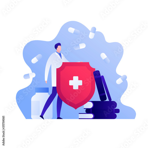 Обследование сердца. Врач-кардиолог осматривает человеческое сердце с помощью увеличительного стекла, плоская векторная иллюстрация. Медицина и здравоохранение, кардиология.