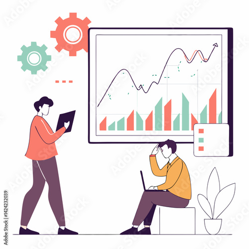 Векторная концептуальная иллюстрация анализа сердечной деятельности. Электрокардиография, ЭКГ или процедура ЭКГ с участием женщин-пациентов и медицинского персонала. Здравоохранение, кардиология, состав для обследования сердца.