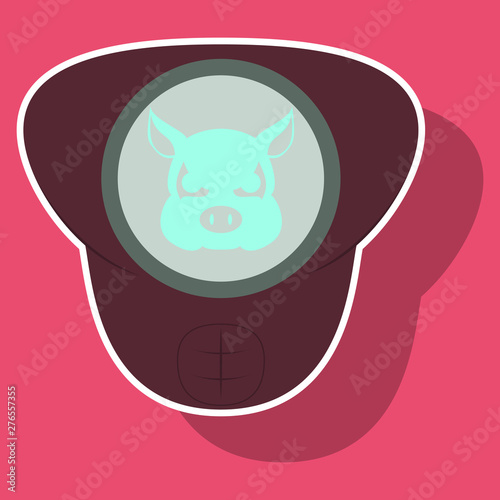 Вектор тяжести в желудке. Значок боли в животе. Милый мультяшный персонаж, изображающий внутренний орган пищеварения человека, грустное лицо и гирю, на белом фоне.