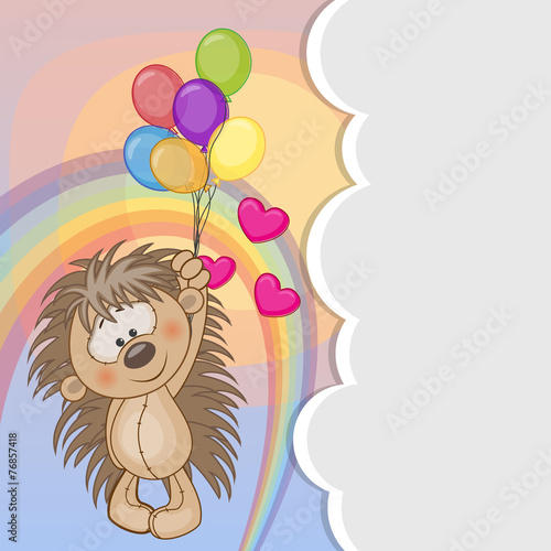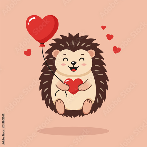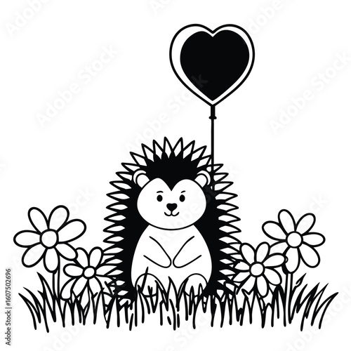 Пасхальный вектор. Милый мультяшный ежик держит цветок в руке и крашеные яйца на спине. Весеннее праздничное животное для украшения поздравительной открытки, изолированное на белом фоне