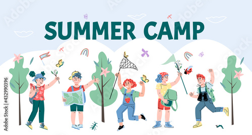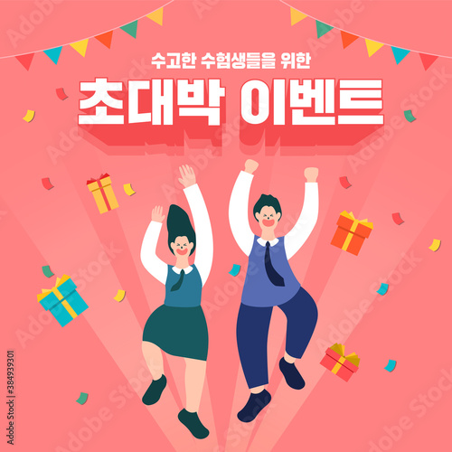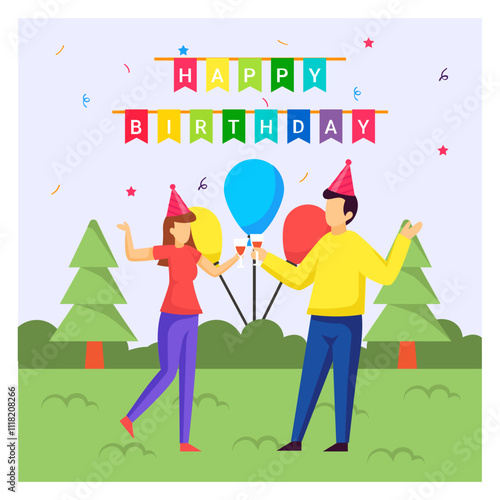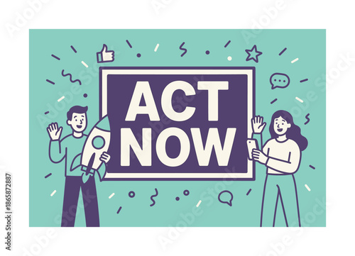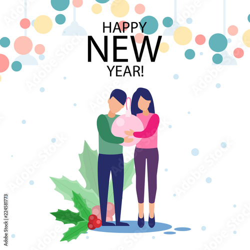 Счастливые мужчина и женщина, держащие баннер с приветственным сообщением, векторная плоская иллюстрация. Привет, концепция приветственного сообщения.