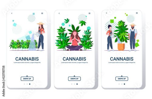 Выращивание конопли. Выращивание марихуаны в помещении при искусственном освещении. Экраны мобильных приложений. Векторный шаблон баннера для разработки веб-сайтов и мобильных устройств. Иллюстрация дизайна веб-сайта и пользовательского интерфейса.