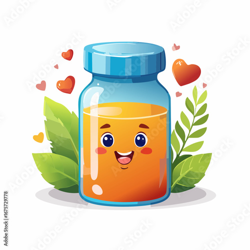 Рекламный плакат травяных таблеток. Вектор вырезки из бумаги для альтернативной медицины. Концепция гомеопатического лечения и фитотерапии. Иллюстрация огромной бутылки с лекарством с зелеными листьями или натуральными ингредиентами